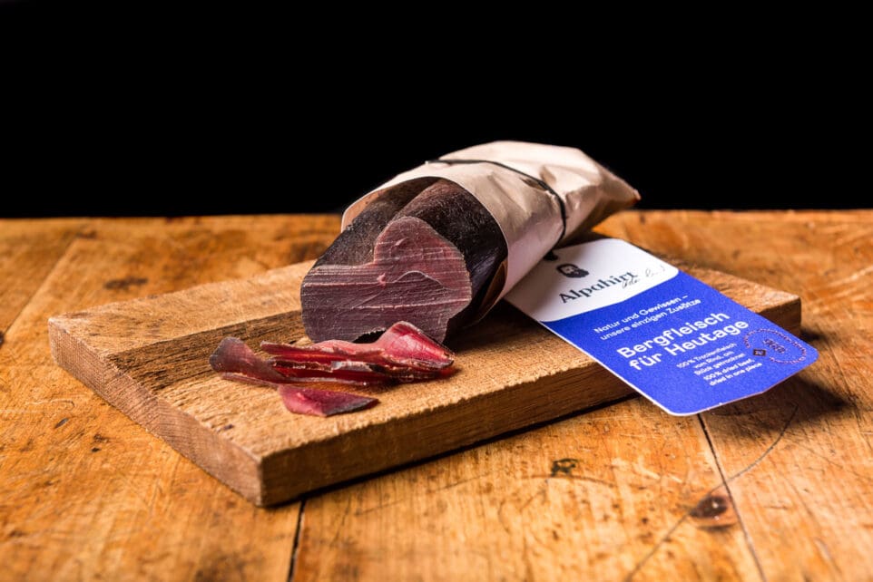 - Producers: Alpahirt verarbeitet das Fleisch nach ursprünglichem Rezept und steht für 100%ige Transparenz: Jedes Stück Fleisch kann auf Anfrage bis auf die Alpweide der Sommerung, mit Name und Lebensgeschichte der Kuh zurückverfolgt werden.