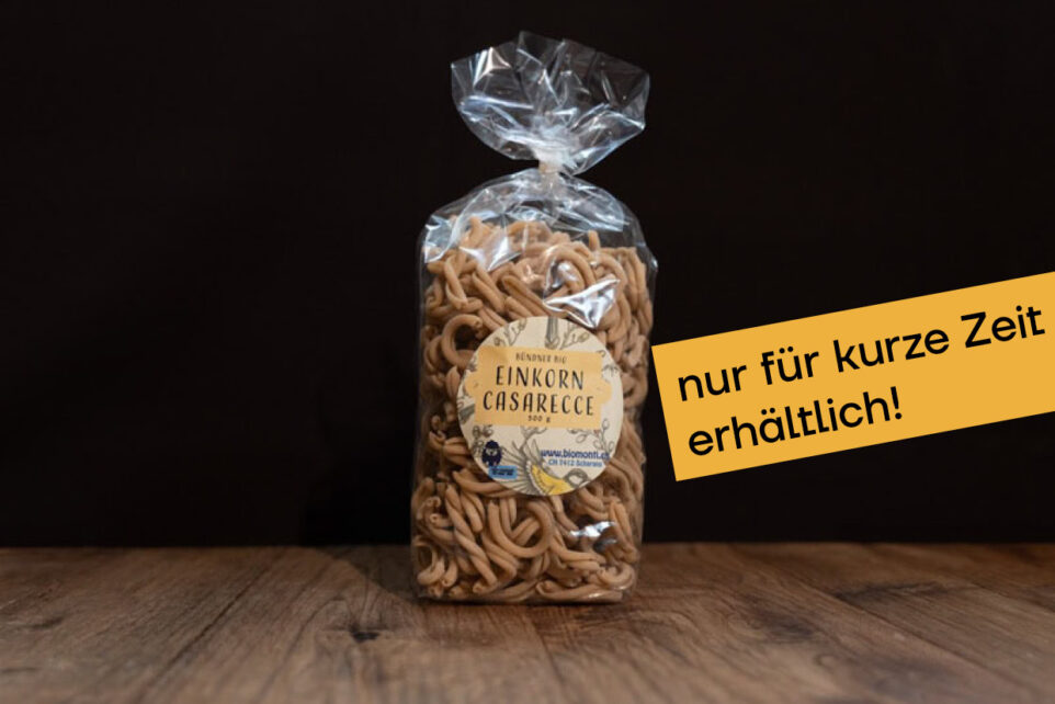 Das alte Berggetreide Einkorn wird von der Familie Buchli im Domleschg biologisch angebaut und gleich auf dem Bauernhof zu Pasta verarbeitet. Die Pasta besteht zu 100% aus Einkornmehl und hat einen feinen nussigen Geschmack.