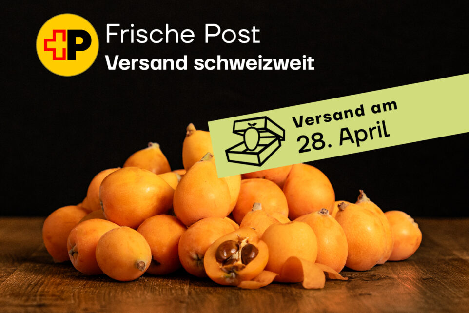 Schweizweit liefern wir dir diese Früchte per A-Post direkt an deine Haustür! Deine Früchtebox wird am Dienstag, 28. April, der Post übergeben und trifft voraussichtlich bereits am Folgetag, dem Mittwoch, 29. April, bei dir ein. Bitte beachte, dass sich die Zustellung in Ausnahmefällen um einen Tag verzögern kann.