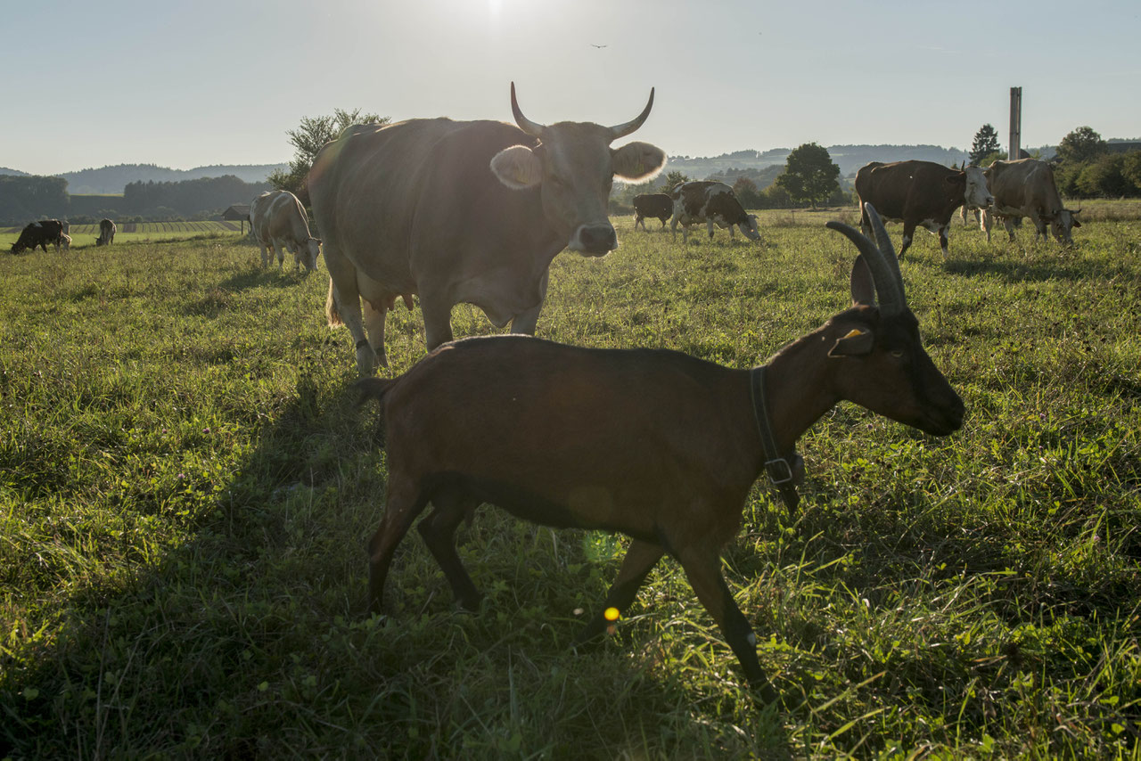- Tierhaltung: Biologisch-dynamische Landwirtschaft. Auf dem Gut Rheinau leben 55 Kühe verschiedener Rassen zusammen nach dem System der Mutter- und Ammengebundenen Aufzucht. Das heisst, alle Kälber kennen ihre Mutter und trinken trotz Milchwirtschaft direkt vom Euter. Als Teil einer wesensgerechten Tierhaltung ist die Hoftötung und damit die stressfreie Schlachtung in gewohnter Umgebung, ohne Transport, Trennung von der Herde, ungewohnte Geräusche und Gerüche ein wichtiger Bestandteil.