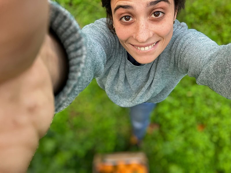Auf dem etwa 6 Hektar grossen, hügeligen Land bei Mazzarrone wachsen nun Elenas Tafeltrauben, umgeben von einem jahrhundertealten Olivenhain. Die Kultur war über mehrere Jahre vernachlässigt worden und Elena musste sie zuerst wieder pflegen, z.B. durch Zurückschneiden der Stauden und Einbringen von Kompost in den Boden. Es war ein aufregender, nicht einfacher Start in einem Umfeld stark industrialisierter Landwirtschaft, wo Wasserknappheit und extrem lange Hitzeperioden im Sommer zu einer anhaltenden Präsenz von Parasiten führen können. Seither lernt Elena Jahr für Jahr dazu und diversifiziert ihren Anbau – vor kurzem hat sie Pfirsich- und Orangenbäume gepflanzt. Bereits beobachtet sie eine Zunahme der Artenvielfalt und eine Verbesserung der Bodenstruktur. Zur Zeit zieht sie gerade das Einbringen von Traubentrester für zusätzlichen Bodenaufbau in Betracht. Der Trester gilt als gute, natürliche Quelle für Phosphor.