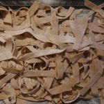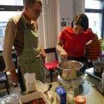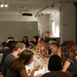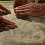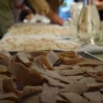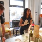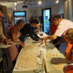 Als unsere beiden ersten Mitglieder, Sabine und Kaspar aus Basel, nachmittags im L200 an der Langstrasse eintrudelten waren die Pasta-Utensilien bereits ausgelegt und das Emmer – Mehl bereit, geknetet zu werden. Sabine und Kaspar erzählten mir, sie seien mit dem Zug von Basel her angereist und hätten schon lange grosse Freude an den feinen Crowd Container Lebensmitteln. Nach und nach vervollständigte sich unser Koch-Grüppli bis wir dann vollzählig von Maurice Maggi in den Nachmittag eingeführt wurden. Teig ausrollen, Mandeln zerstossen, Passata köcheln – die Zeit verflog wie im Winde und kurz bevor die restlichen Mitglieder zum Abendessen dazustiessen war die letzte Emmer – Nudel geformt und der Sugo abgeschmeckt. Es folgte ein wunderbares Schlemmen und Kennenlernen. Zu Getreidesorten wie Emmer, Dinkel und Einkorn erzählte uns Bernadette vom Forschungsinstitut für biologischen Landbau (FiBL) Spannendes. Unser Tobias schmückte das Gekochte mit Einblicken und Anekdoten zu den jeweiligen Produzenten dahinter. Nun, es war in vielerlei Hinsicht ein inspirierender Abend. Es trafen Menschen mit unterschiedlichsten Hintergründen, geografisch wie auch sonst, zusammen. Eines aber teilten wir alle, nämlich die Freude an Lebensmitteln und die Wertschätzung deren Geschichte dahinter.