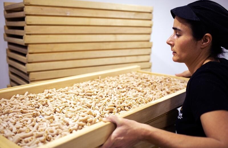 Den Dinkel für diese Teigwaren haben die Produzent*innen aus alten asturischen Sorten selbst gezüchtet und sorgfältig an das andalusische Klima angepasst. Das Team von Spiga Nigra mahlt die ganzen Dinkelkörner mitsamt Keimling in seiner kleinen Mühle. Anschliessend wird der Teig durch traditionelle Bronzeformen gepresst und bei niedrigen Temperaturen über 20 Stunden schonend getrocknet. So bleiben Geschmack und Nährstoffe optimal erhalten.