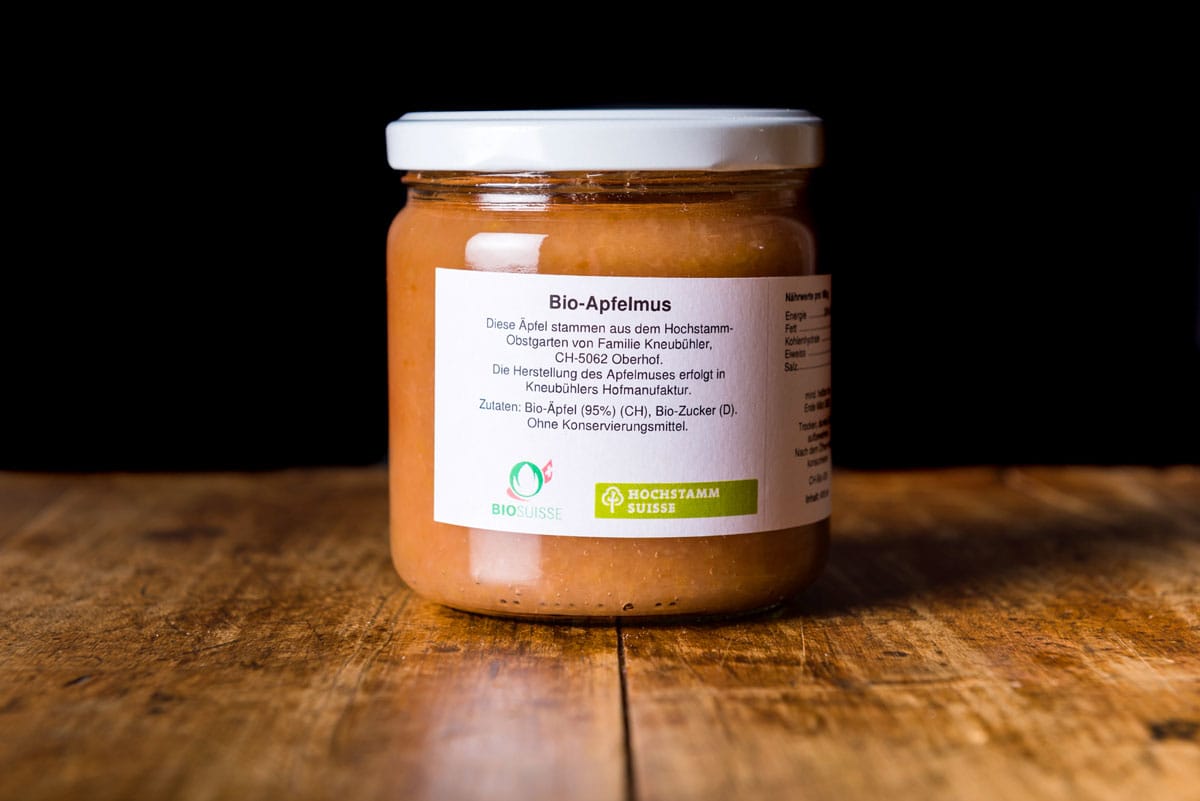 - Qualitätsmerkmale: Es handelt sich um sortenreines Apfelmus: Nur beste, ausgereifte biologische Hochstamm Äpfel der Sorte «Sauergrauech» werden von der Familie Kneubühler in kleinen Chargen handwerklich verarbeitet.