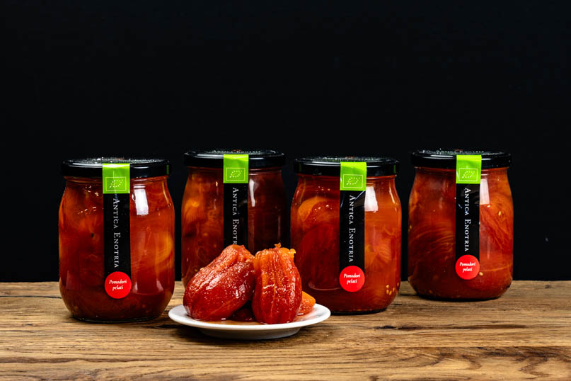 - Qualitätsmerkmale: Für das einzigartige Aroma dieser Pelati gibt es diverse Gründe: viel Sonne, natürlicherweise salzhaltige Kalkböden, wassersparende Tröpfchenbewässerung. Damit dieser Geschmack auch ins Glas kommt, achten Luigi und sein Team der Antica Enotria auf grösste Sorgfalt bei Ernte und Verarbeitung. Nur die wirklich reifen Tomaten werden geerntet und noch am gleichen Tag auf dem Hof geschält und mit Salzwasser haltbar gemacht. Neben der höchstmöglichen Qualität bringt dieses Vorgehen einen weiteren Vorteil: Die Erntespitzen werden etwas aufgefangen und die Mitarbeitenden können über einen längeren Zeitraum angestellt werden.