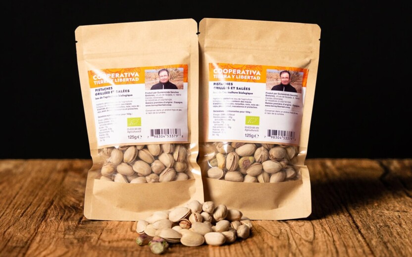 Gumersindo ist Mitglied von Tierra y Libertad, unserer Partnerkooperative in Andalusien. Gemeinsam mit seiner Frau Violeta betreibt er einen 12 Hektar grossen Biohof in der Hochebene der Provinz Granada. Die beiden gehören zu den ersten, die den Pistazienanbau hierher gebracht haben: Es ist eine von wenigen Kulturen, die mit dem rauen Klima und den salzigen Böden des kargen Altiplano zurechtkommt, und somit eine willkommene Alternative, um mehr Wertschöpfung in die Region zu bringen. Daneben bauen sie auch Oliven, Mandeln und Baumnüsse an. Obwohl es einfacher wäre, an grössere Verarbeiter zu verkaufen, ist es ihnen ein Anliegen zu wissen, an wen sie ihre Produkte verkaufen. Sie schälen, rösten und salzen ihre Mandeln und Pistazien mit Einsatz von viel Handarbeit in ihrer eigenen kleinen Manufaktur Pista Sol.