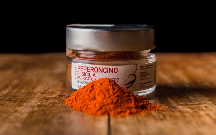 Vom Feld bis ins Glas – die Kooperative Valdibella führt jeden Arbeitsschritt selbst aus. Sie baut die Peperoncini auf den eigenen Felder an. Im Verarbeitungsbetrieb der Kooperative werden die Peperoncini zerkleinert, schonend getrocknet, entkernt und im Anschluss gemahlen. So behält das Pulver seinen intensiven Geschmack und ist nicht bloss scharf.