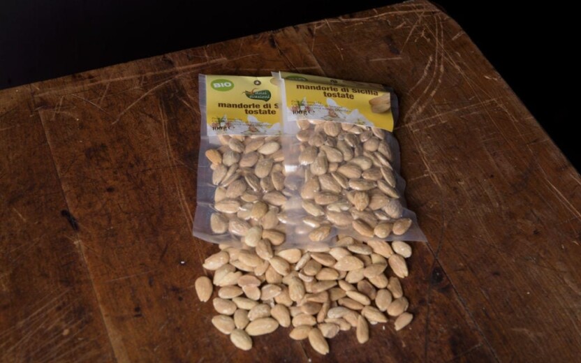Gino Linguanti und Carmelo Agosta von der Azienda Cappello Rizzarello aus der Provinz Ragusa beliefern die Kooperative L’Arcolaio mit ihren Mandeln. Auf beiden Bio-Betrieben wachsen neben Mandelbäumen unter anderem auch Johannisbrot-, Oliven-, Zitronen- und Orangenbäume. Gino und Carmelo bewässern ihre Mandelbäume nur während Hitzespitzen und mit einem Tröpfchenbewässerungssystem, um den Wasserverbrauch zu minimieren. Die permanente Bodenbedeckung und das Mulchen im Winter wirken der Erosion entgegen. Die Mandeln werden bei Loman, einem von zwei Schwestern geführten und auf Mandeln spezialisierten Betrieb, von der Schale befreit und nach Siracusa gebracht. Dort werden die Mandeln von L’Arcolaio veredelt.