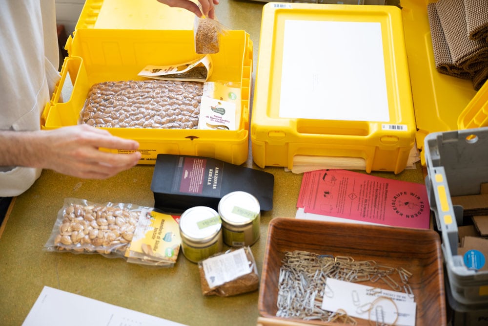 Kund*innen-Logistik 2016: Die Pakete wurden in Kerala mit identischen Zutaten bestückt und dann in Zürich und Bern von Hand ausgeladen und von der «Crowd» abgeholt.